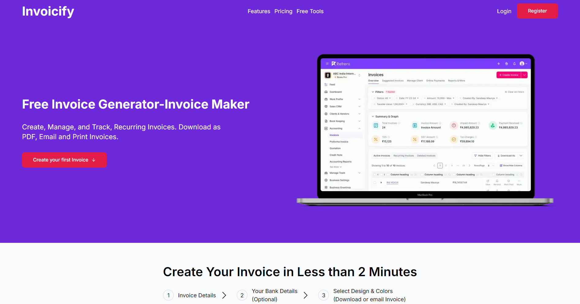 A SaaS Invoice Generator with downloading, saving and sending invoice via mail.